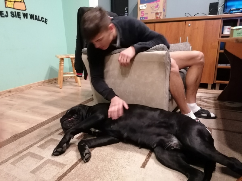 Było to już kolejne spotkanie z tym psem. Tym razem podopieczni dowiedzieli się dużo szczegółów na temat użytkowości tej rasy. Cane Corso to rasa psów należących do psow stróżujących. Jego zadaniem jest strzec obejścia, na którym się znajduje i z tej funkcji wywiązuje się bardzo dobrze. Prócz zdobytej wiedzy mogli obcować z tym psem co sprawiło im dużo radości. Spotkanie było zorganizowane w ramach programu „ Kontakt ze zwierzętami i możliwość bycia lepszym”.