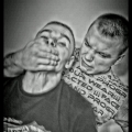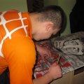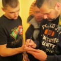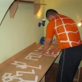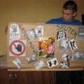 Dwóch wychowanków pod opieką p. Ani - pedagoga i p. Marii - psychologa wzięło na siebie zadanie przygotowania jednego z trzech plakatów dotyczących przemocy. Jak to zrobić, jak taki plakat powinien wyglądać, jaką zastosować technikę? Od czasu podjęcia decyzji o wykonaniu plakatu mózgi wychowanków Tomka i Radka pracowały na zwiększonych obrotach. Wreszcie nadszedł dzień zmierzenia się z pomysłami. Wychowankowie wybrali technikę naklejania odpowiednich napisów, haseł, apeli, zdjęć , rysunków; wszystko wybrane z gazet. Przymiarki, próby trwały dość długo zanim zapadła decyzja : kleimy!