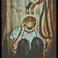 Jeden z wychowanków, Damian również postanowił przygotować plakat dotyczący zagadnienia przemocy. Wspólnie z psychologiem p. Michałem wykonali pracę plastyczną zwracającą uwagę na problematykę wpływu wczesnych relacji między dzieckiem a dorosłymi na kształtowanie się zachowań agresywnych. Taki sposób ujęcia tematu był pomysłem Damiana. Praca nad plakatem była dla niego bardzo osobistym przeżyciem, które odnosił do swoich doświadczeń.