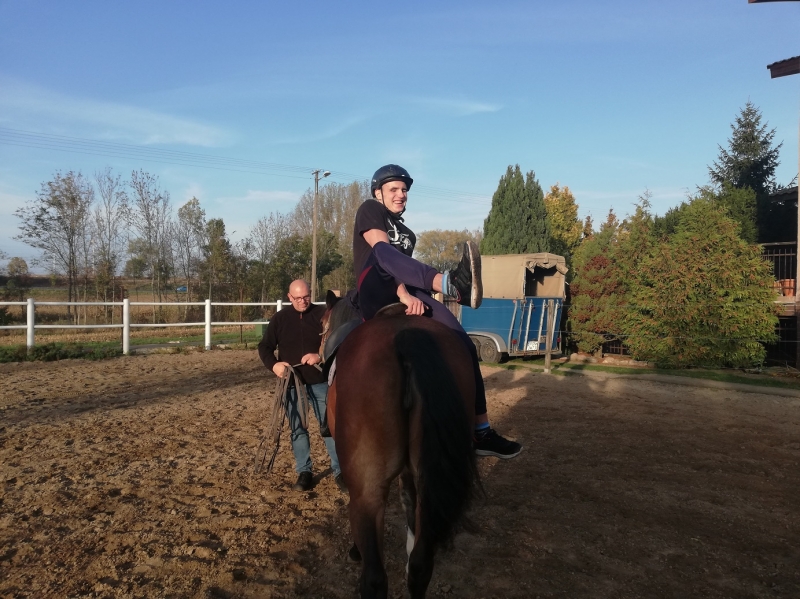 W dniu 22.10.2019 r. Wychowanek Marcin pod opieką pracowników placówki brał udział w wycieczce do zaprzyjaźnionej stajni w Lubiniu.
