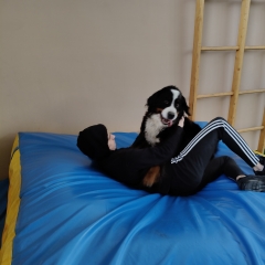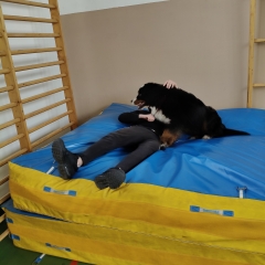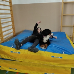 W dniu 29.04.2024 po raz kolejny w ramach programu „Kontakt ze zwierzętami i możliwość bycia lepszym” wychowanków naszej placówki odwiedziła suka rasy Berneński Pies Pasterski o imieniu Jenny.