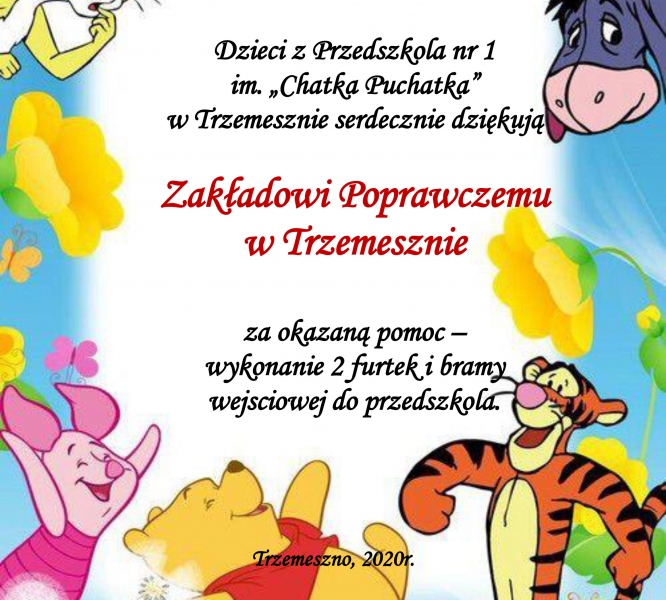 Z przyjemnością przesyłam podziękowanie dla wychowanków i pracowników Zakładu Poprawczego w Trzemesznie.