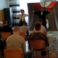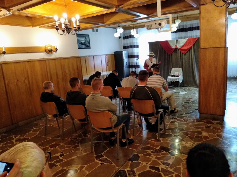 Aktorzy Teatru Kurtyna przyjechali do naszego Zakładu aż z Krakowa. Wraz z wykonawcami mo-gliśmy się przenieść do wydarzeń poprzedzających pamiętną datę 11 listopada 1918 roku. Na scenie dominowały utwory miedzy innymi Marii Konopnickiej, Marii Pawilkowskiej – Jasno-rzewskiej czy Juliana Tuwima przeplatane znanymi pieśniami patriotycznymi, które przy-bliżyły nam klimat tych niezwykłych chwil i pozwoliły poczuć to, co czuli Polacy po 123 latach niewoli. Za swój występ , który był dla nas ciekawą lekcją historii nagrodziliśmy artystów grom-kimi brawami.