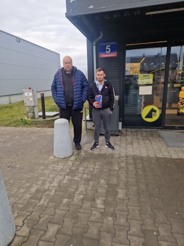Wychowanek pozostawał pod opieką p. Macieja i p. Tomasza. Wyruszyliśmy po godz. 9tej. W sztabie wychowanek odebrał swój identyfikator oraz puszkę. Dzięki temu, że korzystaliśmy z służbowego samochodu szybko dostaliśmy się pod jeden z Trzemeszeńskich marketów. Po jakimś czasie przenieśliśmy się do Kruchowa gdzie kwestowaliśmy pod kościołem. Po powrocie spędziliśmy jeszcze kilka godzin na terenie Trzemeszna. Następnie przekazano do sztabu orkiestry- na licytację kilka przedmiotów wykonanych przez zakładowe warsztaty (ozdobne ramki, świeczniki itd.) Na koniec rozliczyliśmy się z sztabem i powróciliśmy do Zakładu. Zrealizowano główny cel wychowawczy jakim było niesienie bezinteresownej pomocy innym ludziom. Wychowanek był bardzo zadowolony z swojej postawy jak i całego przedsięwzięcia.