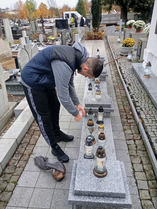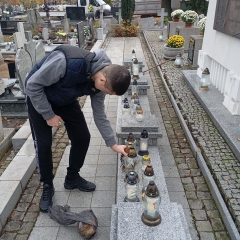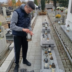 „Szkoła Pamięta” to akcja Ministerstwa Edukacji i Nauki. odbywa się w okresie w którym wspominamy zarówno naszych bliskich jak i tych, którzy zapisali się w historii – tej ogólnonarodowej i lokalnej. W ten sposób inicjatywa nawiązuje do polskiej tradycji świąt zadusznych. Celem akcji jest zwrócenie uwagi młodych ludzi na potrzebę pielęgnowania pamięci o bohaterach naszej wolności, szczególnie tych, którzy są związani z historią danego miejsca, regionu, społeczności. W dniu 30.10.2024 udział w akcji brał uczeń naszej szkoły, Patryk, wraz z wychowawcami panem Sławomirem, Przemysławem i Ryszardem.
