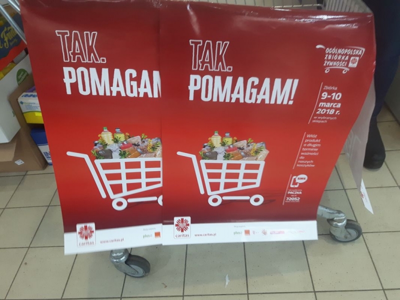 Tym razem Sebastian i Wojtek byli wolontariuszami akcji „Tak. Pomagam” organizowanej przez CARITAS Gniezno. Chłopcy w jednym z gnieźnieńskich sklepów przez 4 godziny zachęcali klientów do oddawania żywności dla osób znajdujących się w potrzebie. Jak zwykle w okresie przedświątecznym celem akcji było zebranie trwałych produktów żywnościowych, które następnie poprzez CARITAS zostaną rozdysponowane wśród osób znajdujących się w szczególnie trudnej sytuacji materialnej.