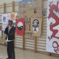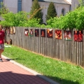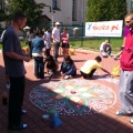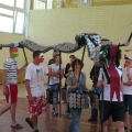 Prowadzącej udało się pozyskać plastikowe palety, służące prawdopodobnie do wysiewania roślin, stary głośnik, wieszak i srebrne, papierowe kółka. Z tych elementów, przy pomocy zszywaczy, taśmy klejącej, butelek i kawałków drewna powstał symbol festiwalu, symbol, który przewijał się także na warsztatach malarskich, a mianowicie chiński smok.
